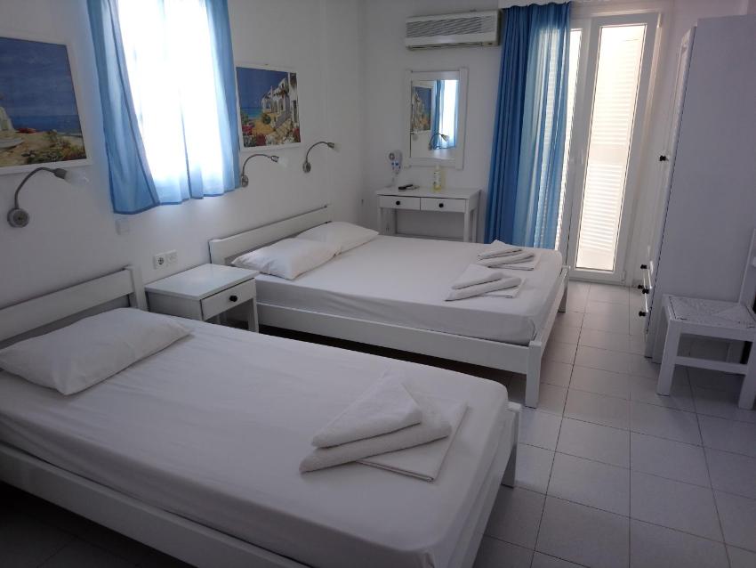 The traditional Cycladic Hotel Mantalena offers spacious, air-conditioned rooms.Opening out to a furnished balcony or patio, each unit is equipped with fridge and satellite TV. Rooms are cleaned daily.